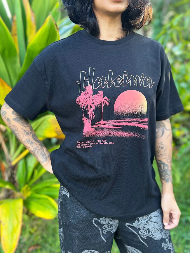 HURLEY OHANA HALEIWA WOMENS BF TEE - BLACK