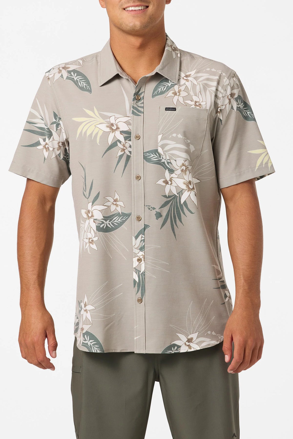 O'NEILL TRVLR UPF TRAVERSE HAWAII BUTTON DOWN WOVEN SHIRT - KHAKI